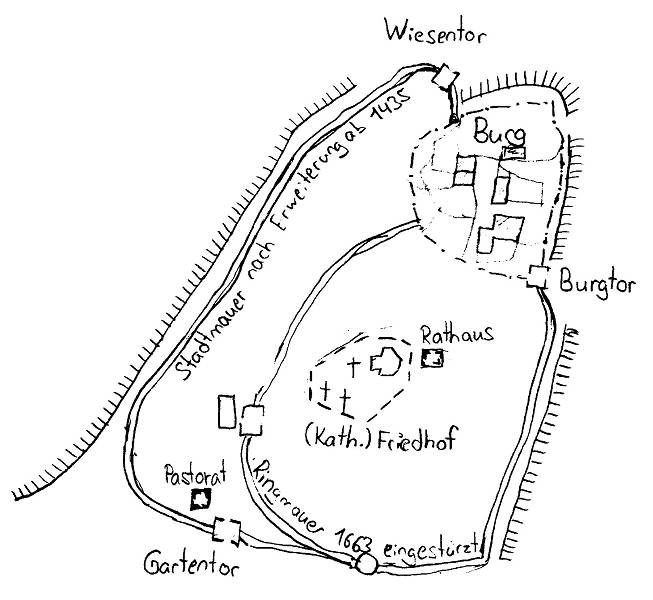 Skizierte Karte der Burg-/Stadtmauer