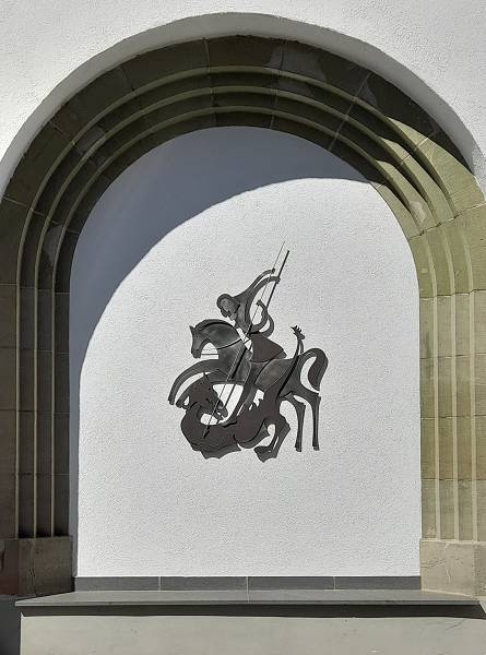 Das St. Georg Denkmal an der Südlichen Wand der Pfarrkirche